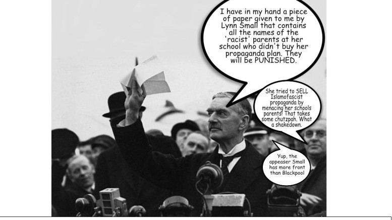 The fact that Ms Small thought it morally, ethically and politically acceptable to threaten children and their parents with the smear of ‘racist’ for not wanting their child to be indoctrinated with pro-Islamic propaganda is chilling. This was not an action by a headteacher concerned about the children under her care, it was the action of a blinkered ideologue, and we should not be allowing those with such an obvious political agenda to have anything to do with education. Ms Small’s action’s ran roughshod over the rights of parents to bring up and socialise their children as they see fit.
