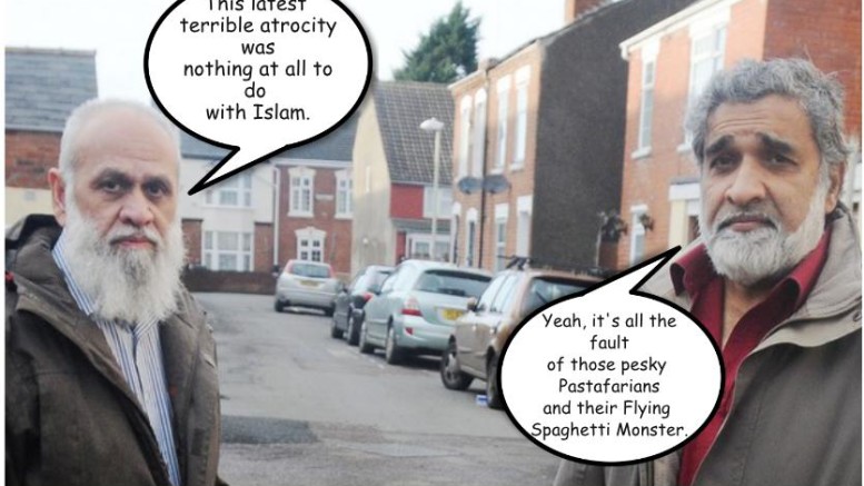 So, Councillor Bhaimia, if they are not Muslim, what are they then? Are they followers of the Flying Spaghetti Monster? Of course they are not they are followers of Islam, like the perpetrators of all the other 23,988 terror attacks that have occurred since September 11th 2001.