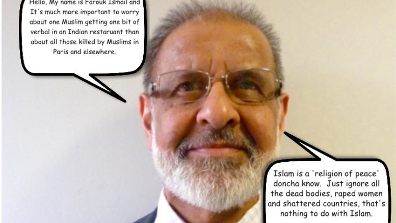 Islamic groups and individuals will jump upon and use almost anything in order to get their way politically and this is what is happening in Redbridge with questionable figures put out by the Tell Mama organisation, being exploited by a particular shady character, one Farouk Ismail of the Federation of Redbridge Muslim Organisations (FORMO). According to the Ilford Recorder, in an article written by journalist Ajay Nair dated 26th November 2015, Farouk Ismail has wasted no time at all in picking up on, and using, Tell Mama’s questionable claims that there has been a massive rise in ‘Islamophobia’ since the Paris Massacre.