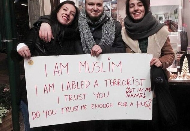 There is a delicious irony in this story in that a short while prior to Wallace coming over all ‘sudden jihad syndrome’, he was campaigning to show Islam as a peaceful and indeed ‘huggable’ ideology, and was featured in the Press doing just that.