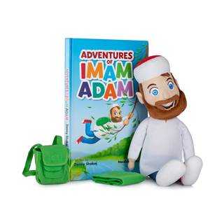 Further research and brainstorming sessions lead Shakoj to create “Adventures of Imam Adam,” a new children’s book he wrote with illustrations by artist Necdet Yilmaz. The book is geared toward children ages 3 and up and follows a Muslim faith leader as he attempts to make the pilgrimage to the holy city of Mecca. The companion plush doll wears traditional Islamic clothing and carries a green backpack with a folded green prayer rug inside.