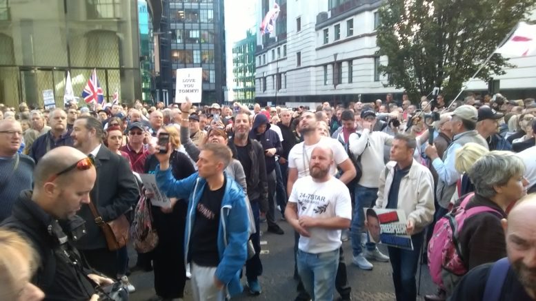 I approached the court area at about 09:40 and found a demonstration by the usual suspects of the Left shouting and screaming and attempting to paint Mr Robinson as some sort of ‘neo Nazi’, which he plainly is not. This demonstration, which appeared to be dominated by members of the Socialist Workers Party, was dwarfed by the massive and from what I could see at the time mostly good natured, pro Tommy demonstration. As it was obvious that I was not going to be able to get into the court I decided to go back to my digs in North London and write this piece as best I could using any information I could get from trustworthy sources. I was delighted to meet some people whose online political content I have enjoyed in the past including the erudite You Tube commentator ‘Politico’.