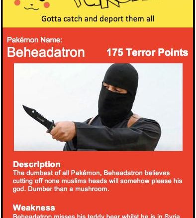 ‘Racist?’ ‘Racist?’ I see no damned racism. I’ve marched in the past against the genuine racists of the National Front, I know what hardcore racism looks like and it is not these ‘Pakemon cards. Mr Froggatt mocked everyone, those who are brown, black and white and who adhere to the ideology of Islam, how on earth can that be called ‘racist’? This is the Daily Mail using the now increasingly empty ‘snarl’ word of ‘racist’ to smear Mr Froggatt and virtue signal to their more left wing readers.