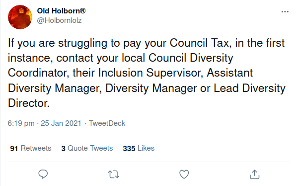 Siddi: At least with Cuncil Tax, it’s equal opportunities piss-taking, shafting us all while driving a wedge between us and pretending that it’s “healing rifts”. When I was on Harrow Council, my favourite duty was presiding over the citizenship ceremonies, welcoming all as “fellow Brits”. The slogan I came up with was adopted officially and was very popular, “Our Harrow – Our Community” giving a sense of belonging to all.. Naturally Labour tried to piss all over it, but failed when Harrow Mosque, the Hindu Temples, Synagogues and Churches displayed it. All this “diversity and inclusivity” crap achieves is to highlight differences rather than our common aims. I’d sack the bloody lot of them and save easily a million quid in salaries, what as once happened, we got along fine, without these useless functionaries.