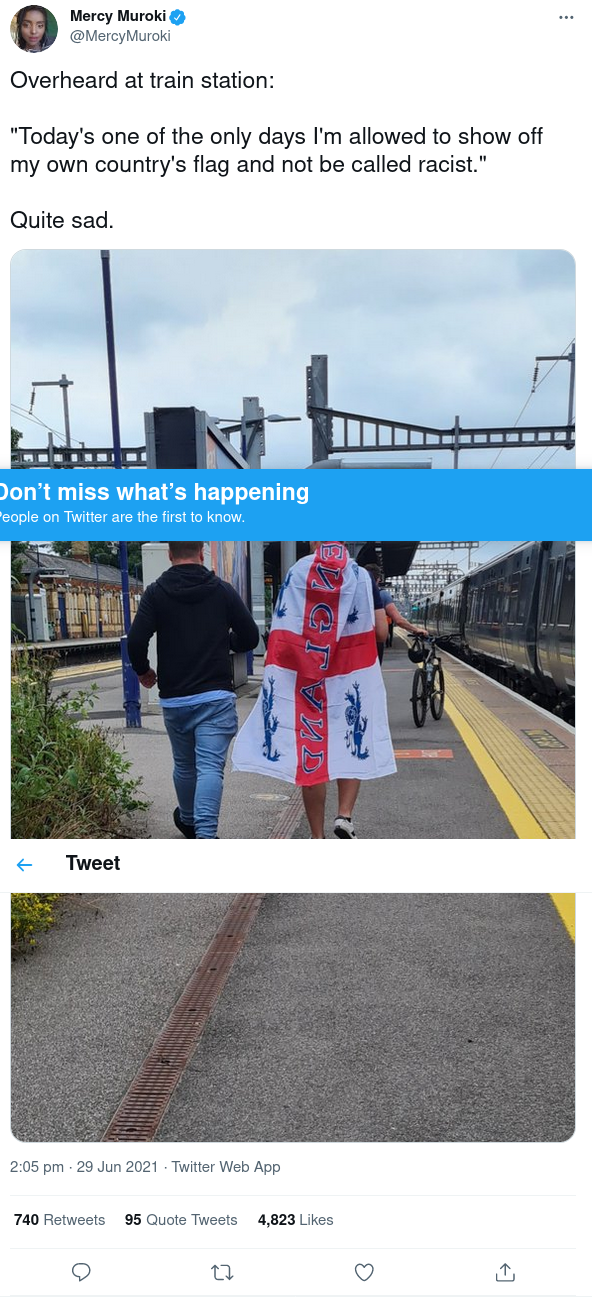 The commentator Mercy Muroki remarks on how denigrated the England flag has become in English society because of the culture war waged against the English by the Left.