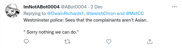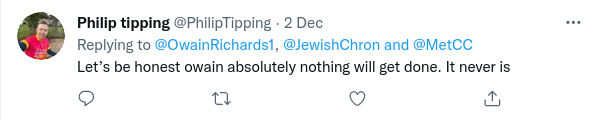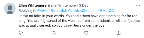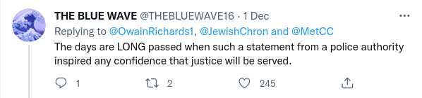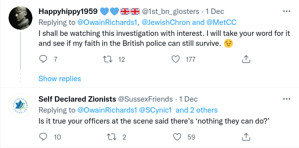If you read the comments screen-shotted below you will pick up a distinct sense of the Met not having the complete confidence of the public over the issue of Islam-derived Jew hatred and about preventing crime in general.