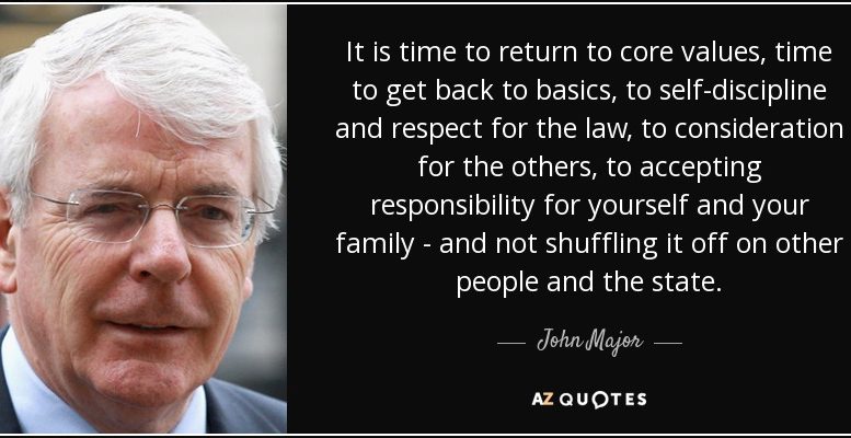 Those of us who remember British politics in the 1990’s also remember the ‘Back to Basics’ campaign started off by the then Prime Minister John Major with a speech about reclaiming old values that he made at the 1993 Conservative Party Conference. We also remember how ignominiously that this campaign ended.