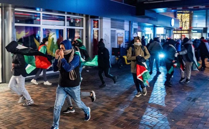 My newsfeed has been full of video and accounts of Muslims running through Amsterdam in the Netherlands and attacking any Jew or Israeli that they could find. The trouble kicked off after a football match between the Israeli side Maccabi Tel Aviv and the Dutch team Ajax. Whilst some Islamic and left wing commentators, such as the BBC, out there are claiming that the trouble started when Maccabi Tel Aviv fans pulled down a ‘Palestine’ flat that was being flown from a building, that’s clearly not the whole story. There are a growing number of credible sounding first hand accounts from Maccabi Tel Aviv fans and others about the violence and it is looking increasingly likely that this is not just a run of the mill bit of football aggro, but a planned and organised mass attack on by Muslims on Jews. There’s always been football aggro surrounding flags, scarves, banners and the presence of opposing supporters but this is much more than that, this is Muslims using the pretence of a football game to go out and violently attack any Jew they could find.