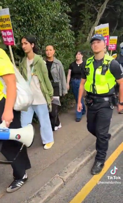 The officers from both the Met and from Essex Police then went on to give us another demonstration of why allegations of two tier policing are not going away anytime soon. Officers from both forces engaged in extremely brutal policing tactics that they rarely, if ever, use against left wing or Islamist demonstrators. Forces who would pander to the middle class extremists of Just Stop Oil or Extinction Rebellion or who excuse Islamists shouting for Jihad in the centre of London or calling for the extermination of Israel’s Jews for a year and a half, broke faces the faces of British working people and ran over with police vans local people who were just out to protest the appalling danger that the Bell Hotel migrants pose to their children. I have placed below this piece media showing both the demonstration itself, the deliberate moving in of SUTR activists to confront local people and the worryingly violent behaviour of these two tier police forces.