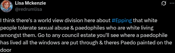 Dr Mckenzie, a person whose words and viewpoints I am increasingly interested in, is correct here. The working class don’t on the whole tolerate nonces, not from their own community nor from any other community.